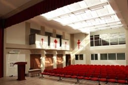 Енергоспестяващи осветителни тела осигуряват оптималния разход на енергия за осветления на различните зони. Горни осветления в част от учебните кабинети и двете големи зали осигуряват естествена дневна светлина в широкоплощната конфигурация на културно-информационния център.